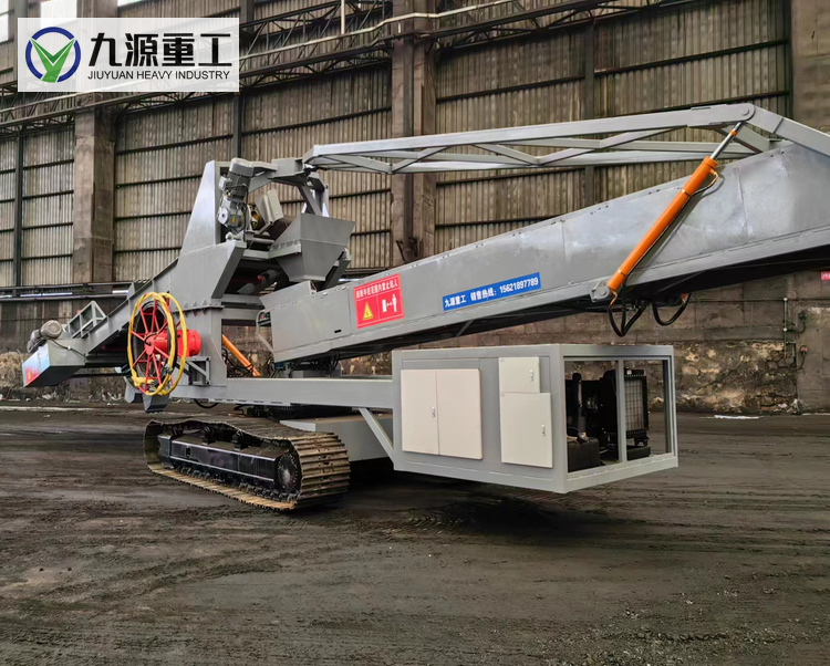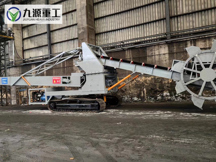 履帶式斗輪機是指一種用于大型干散貨堆場的既能堆料又能取料的連續(xù)輸送的高效裝卸機械。由可俯仰和水平擺動的膠帶輸送臂及其前端的斗輪、機架、運行機構組成,膠帶可雙向運行,取料時由斗輪取料經(jīng)輸送臂送出,堆料時則由主輸送機運來的貨物經(jīng)由輸送臂投向堆場。